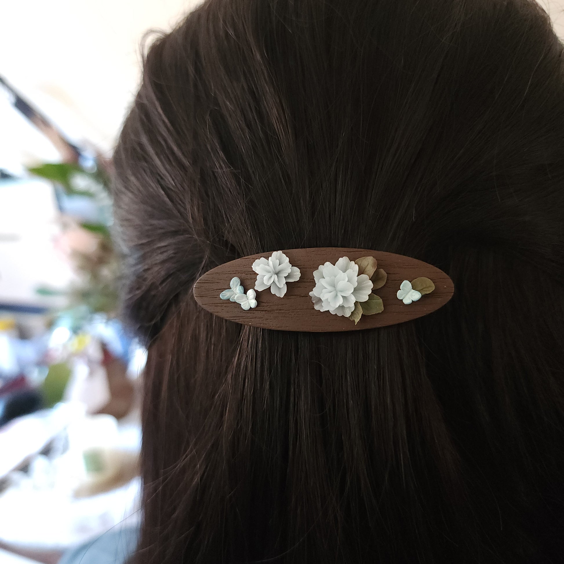 Antique Blues barrette is part of the OOAK collection, which features unique designs created from prototype pieces. I love experimenting with different floral pieces, and sometimes I end up with a pile of beautiful flowers that may not be exactly what I had in mind. Instead of letting them go to waste, I came up with this collection to repurpose them into something beautiful and One-Of-A-Kind!