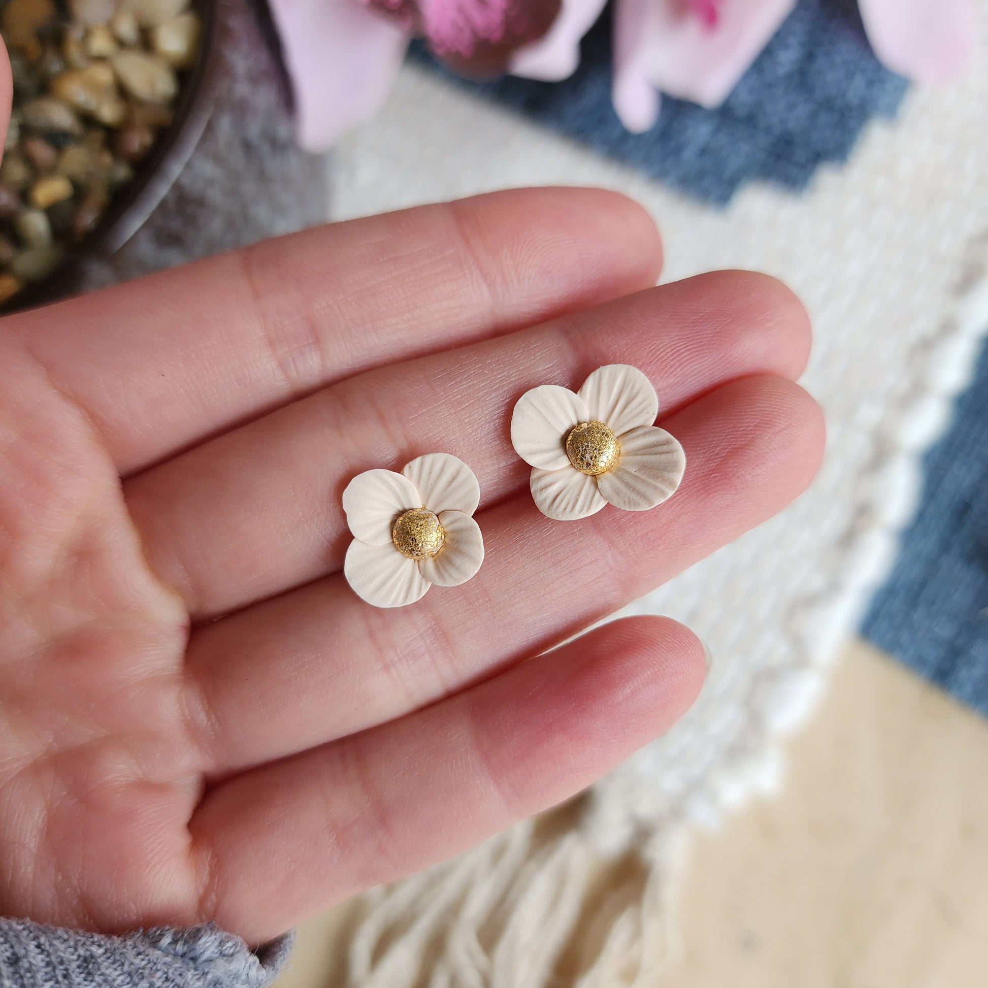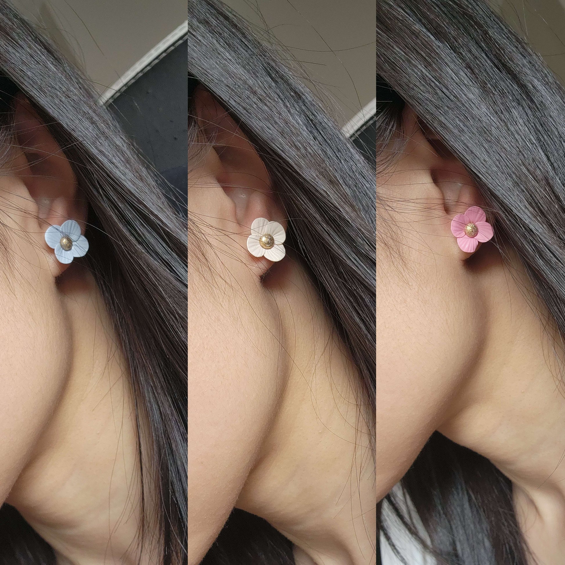 These were my first hand sculpted pair of earrings I designed from scratch! Each petal is cut and individually textured, no two petals nor two pairs will be identical! However I do try my best to match up two that are similar so they don't looks too different to one another!