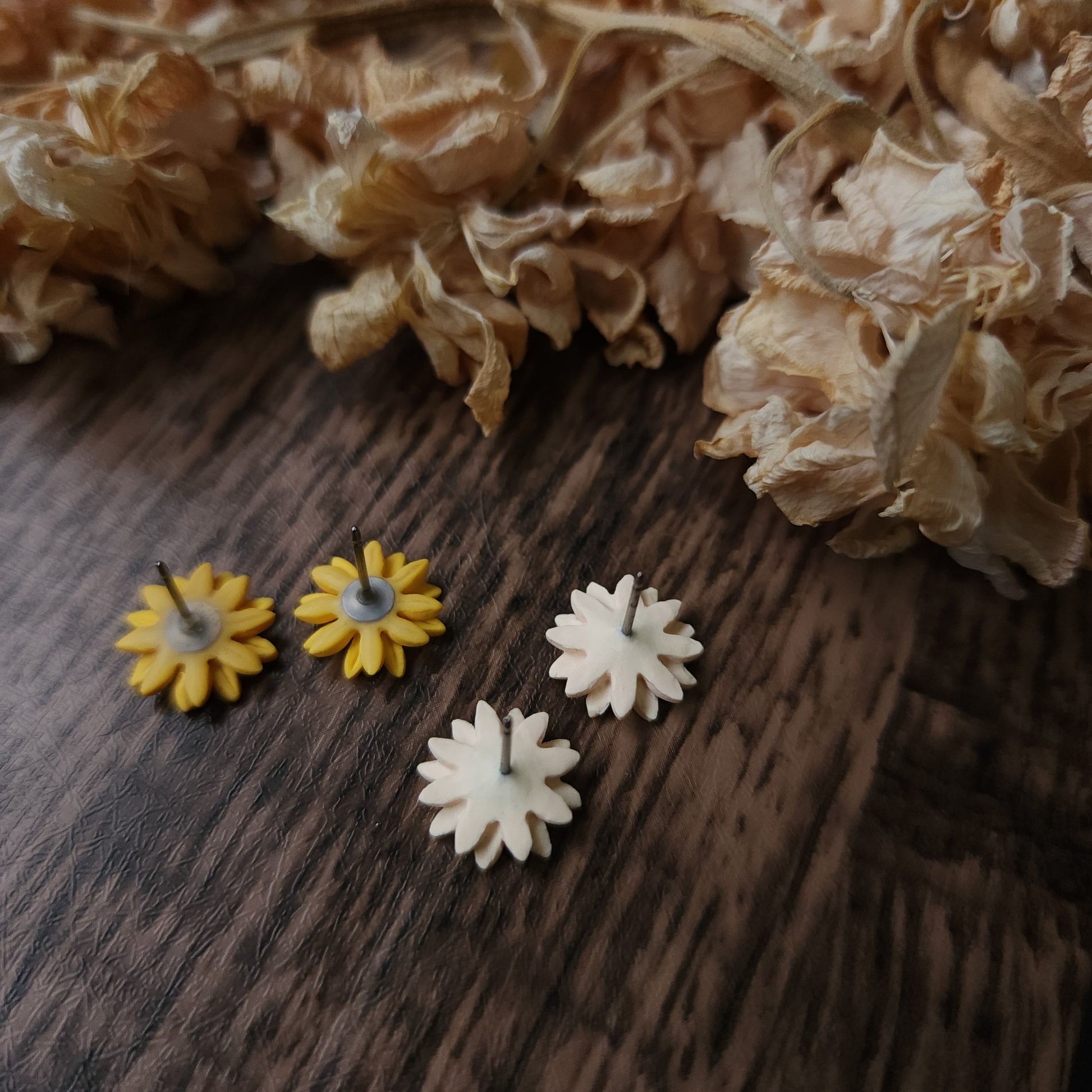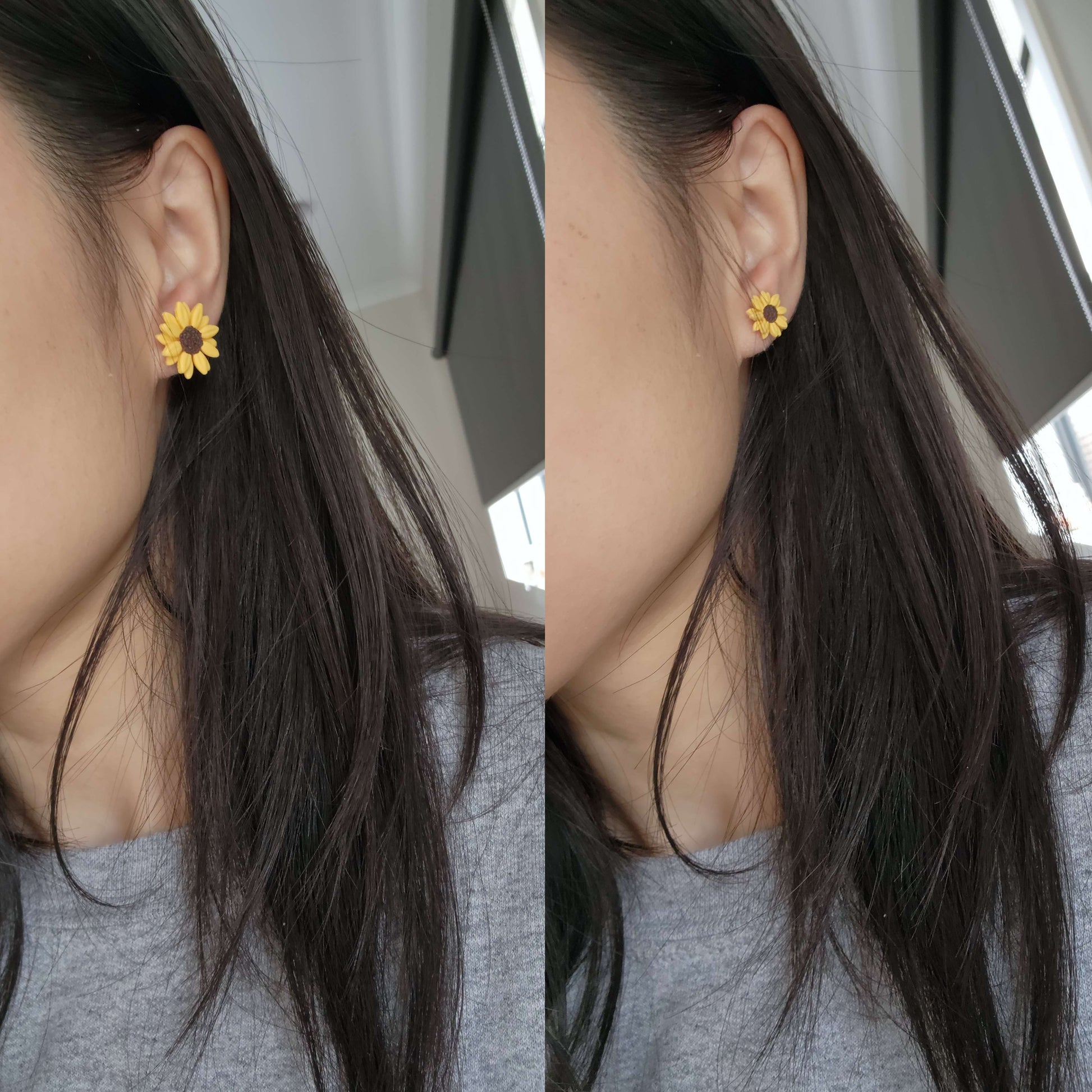 Reduced to clear! The difference between these and the Chloe Studs, despite from the colour is the back of the earrings. The Chloe's are embedded with clay making it more durable whilst the Sunflower Studs has a layer of transparent liquid clay on it.
